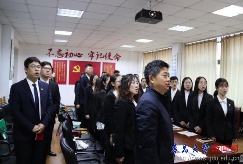接下來,由同學們帶領大家一起集體宣讀了《中國共產(chǎn)黨黨員廉潔自律規(guī)范》和學習了《中國共產(chǎn)黨章程》中的“黨員權利和黨員義務”部分,會議還帶領大家共同學習了習近平在“不忘初心、牢記使命”主題教育工作會議上的講話精神和《中共青島大學委員會“不忘初心、牢記使命”主題教育實施方案》。