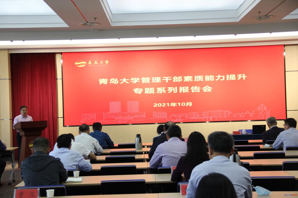 新聞網訊 10月13日下午,學校在會議中心404會議室舉辦管理干部素質能力提升系列報告會第二場報告。校黨委副書記杜方波主持報告會,校黨委常委、組織部部長徐龍飛出席。