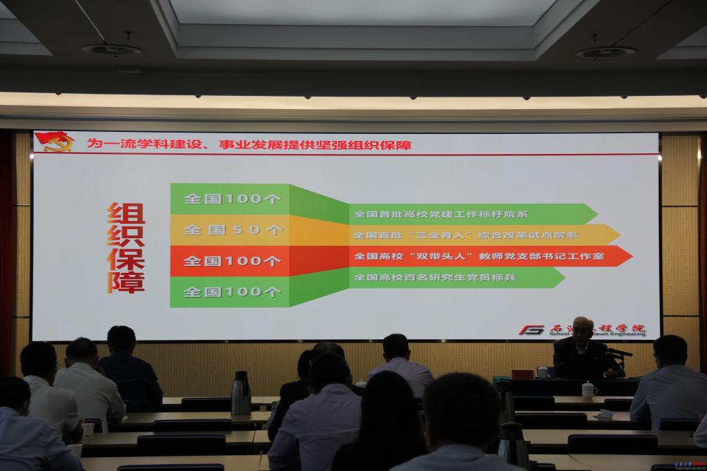 中國石油大學(華東)地球科學與技術學院黨委書記趙放輝以《以一流黨建引領一流學科建設》為題,從全國首批高校黨建工作標桿院系建設入手,介紹了石油工程學院黨建雙創工作和取得的成果,分享了做好院系黨組織書記的工作經驗。趙放輝詳細介紹了“一三三五”黨建“雙創”建設思路,“一個共建”即堅持全國黨建工作標桿院系與全國首批“三全育人”綜合改革試點院(系)共建;“三個結合”即堅持軟件建設和硬件建設相結合、統籌規劃和分步實施相結合、整體提升和品牌塑造相結合;“三項工程”即實施黨政共同負責制的機制工程、“清單工作法”抓基層黨建工程和“三項標桿工程”;“五個到位”實現黨組織領導和運行機制到位、政治把關作用到位、思想政治工作到位、基層組織制度執行到位、推動改革發展到位。