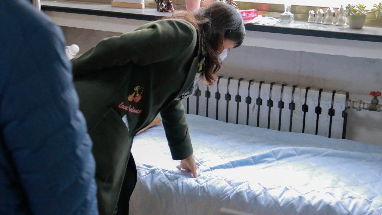 劉彩云現場查看了學生工作人員的辦公和住宿環境,她與大家親切交流,詢問生活和工作情況。當她看到學工人員因陋就簡住宿在辦公室,有的甚至就地打地鋪,忙碌起來經常一天吃不上一頓飯,便要求學生工作處要為全體學工人員做好生活保障和服務,同時叮囑學工人員要勞逸結合,做好個人防護,確保身體健康。