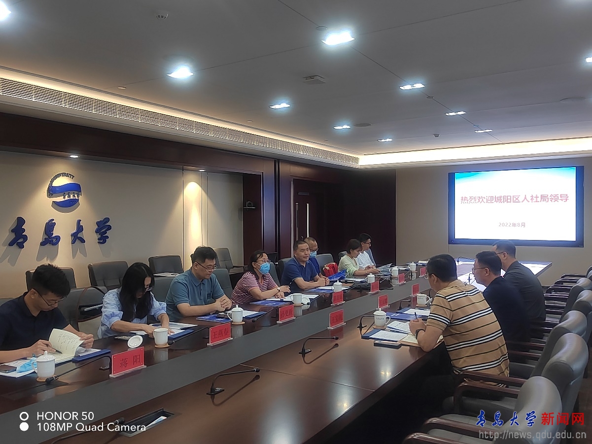 新聞網訊 8月10日,城陽區人社局黨組成員王永曜一行到訪我校, 學校人力資源處處長陳韶娟、產業技術研究院執行院長崔言民等陪同座談。