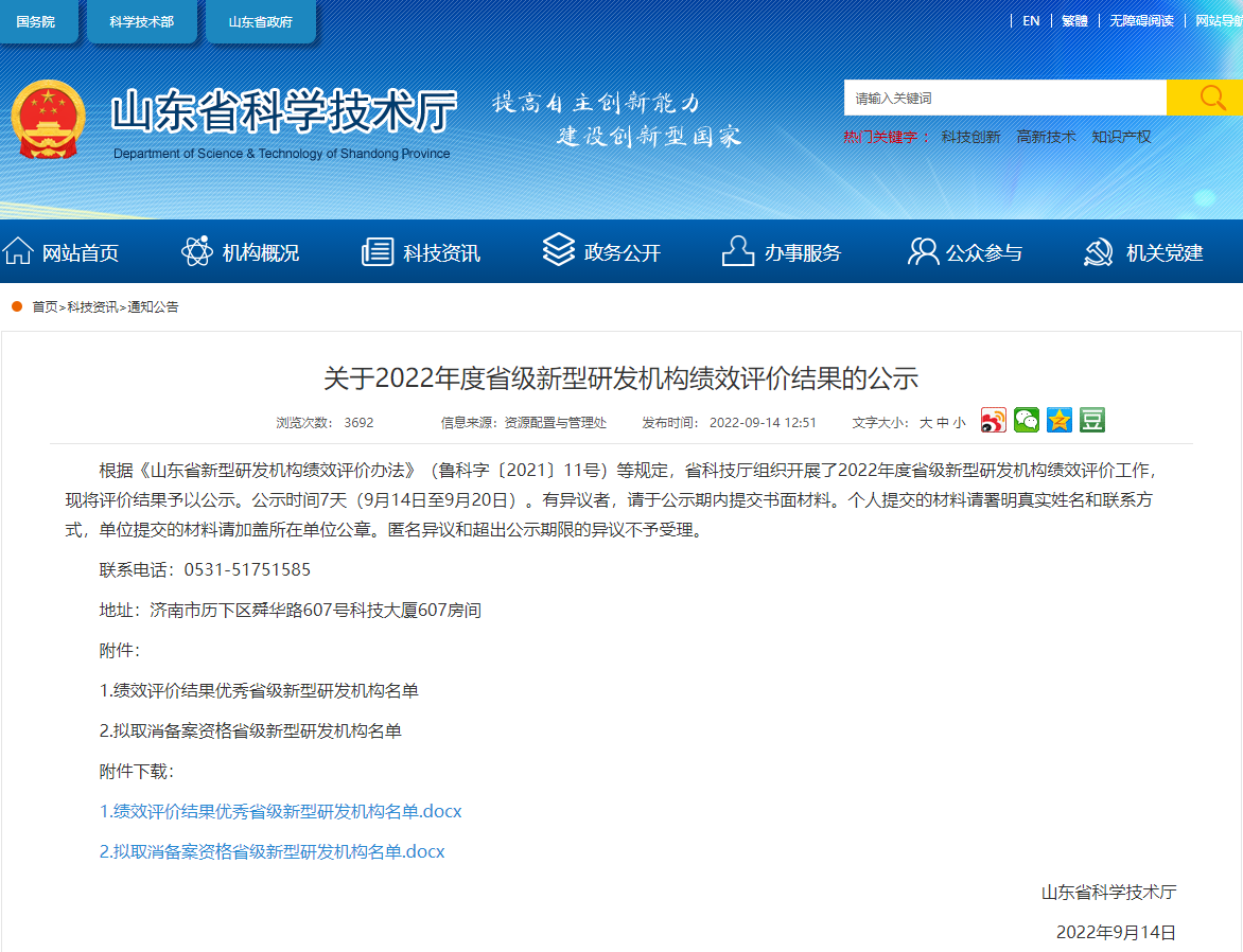 2022年5月,省科技廳組織開展年度省級新型研發機構績效評價工作。研究院通過“科技云平臺”資料申報、視頻答辯、現場考察等評價工作,再次上榜省級新型研發機構績效評價結果優秀名單。