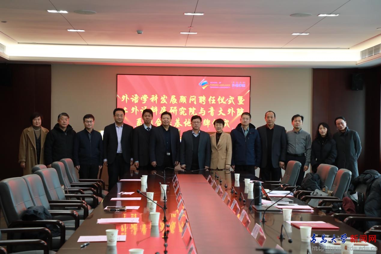 新聞網訊 1月18日,我校在會議中心302會議室隆重舉行外語學科發展顧問聘任儀式暨上海外國語大學語料庫研究院與青島大學外語學院系列合作基地揭牌儀式。校黨委常委、副校長陳濤,上海外國語大學校長助理、語料庫研究院院長胡開寶教授,校人文社科處、研究生院、教務處負責人,外語學院黨政班子成員,各系辦中心主任,學科負責人,特聘教授及師生代表參加儀式。儀式由外語學院院長卞建華主持。