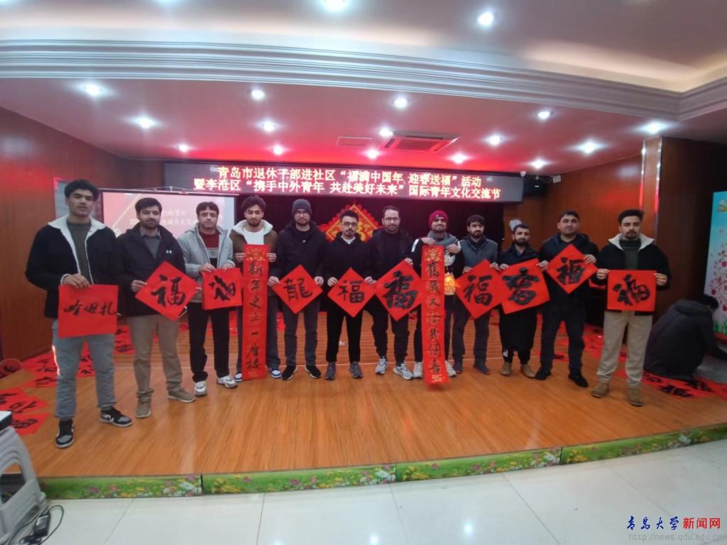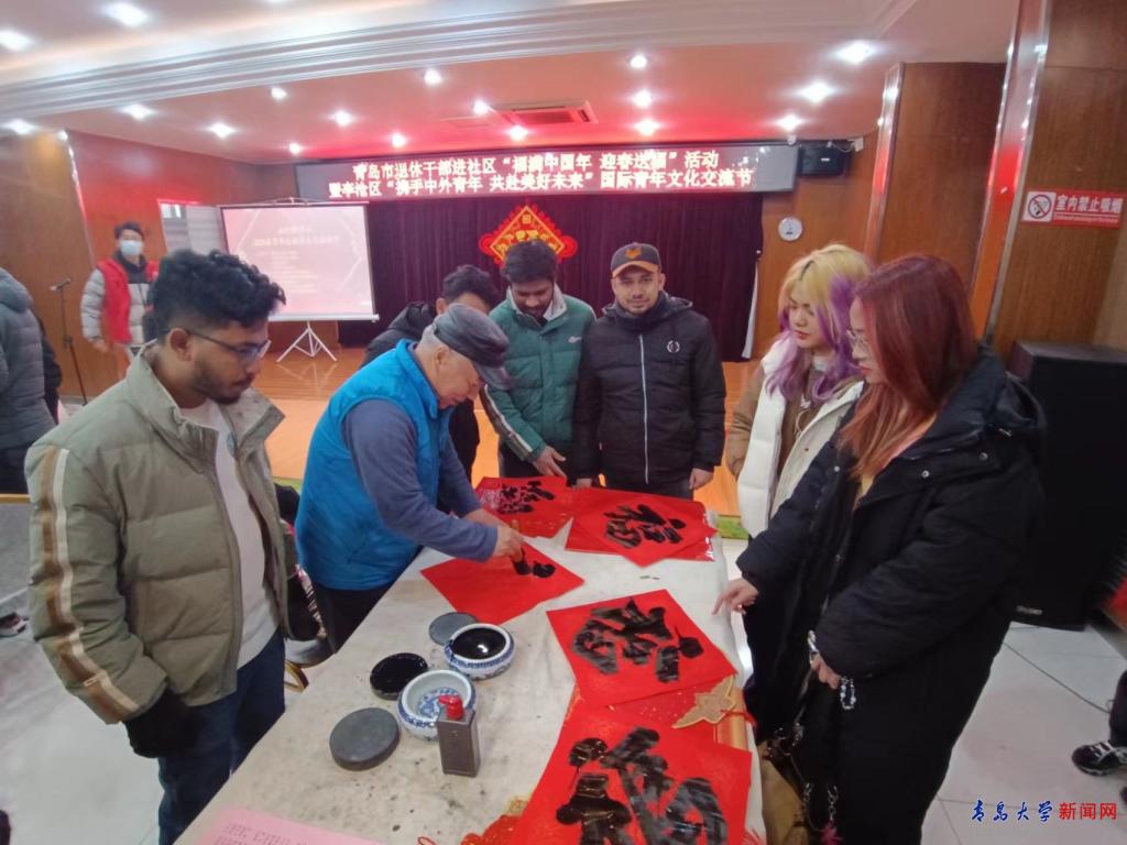 新聞網訊 1月25日上午,我校40多名留學生來到九水東路社區黨群服務中心參加了李滄區“福滿中國年 迎春送?!被顒郁摺皵y手中外青年 共赴美好未來”國際青年文化交流節,外國留學生們與青島市老干部、青年志愿者、社區居民共同體驗中國春節文化,感受中國傳統文化魅力,共同迎接甲辰龍年的到來?;顒佑汕鄭u市委老干部局、李滄區委老干部局、李滄團區委、李滄區九水街道辦事處共同承辦,分為“瑞獅呈祥”“書法送?!薄凹艏堄骸薄懊駱缝挪省薄懊袼渍寡荨钡拳h節。