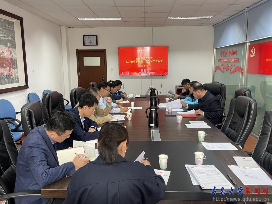 新聞網訊 4月19日上午,校部第三黨總支在辦公樓214召開全體專題會議,傳達學習校黨委、機關黨委關于開展黨紀學習教育相關文件精神和工作要求,啟動部署三黨總支黨紀學習教育工作。三總支書記汪運波主持會議并講話。