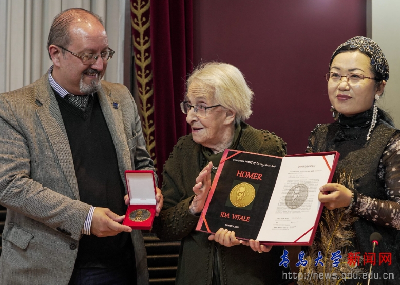 新聞網訊 烏拉圭當地時間4月25日,烏拉圭共和國大學孔子學院,為烏拉圭著名詩人伊達·維塔萊舉辦了其榮獲“歐洲詩歌暨文藝荷馬獎章”的頒獎典禮。