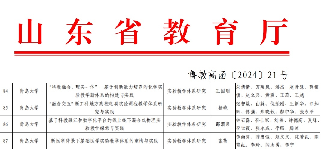 新聞網訊 近日,山東省教育廳公布了2024年實驗教學和教學實驗室建設研究項目立項名單。我校《新醫科背景下基礎醫學實驗教學體系的重構與實踐》等五個項目獲批立項。