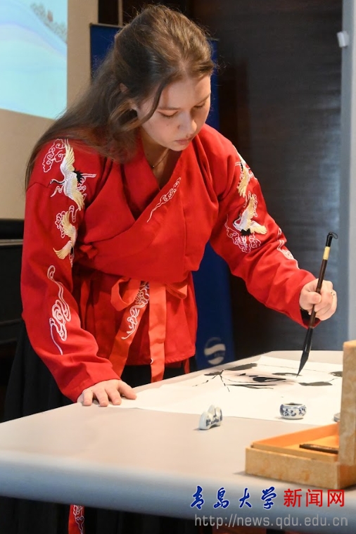本屆“漢語橋”中文比賽最終十三名選手進(jìn)入決賽。比賽中,各組選手紛紛上臺(tái)用中文分享自己學(xué)習(xí)中文的熱情和毅力。才藝展示環(huán)節(jié)更是精彩紛呈。選手們通過太極扇、毛筆繪畫、扇子舞等表演形式,展現(xiàn)了中國(guó)文化的獨(dú)特魅力。在文化知識(shí)問答環(huán)節(jié),選手們憑借扎實(shí)的中文基礎(chǔ)和豐富的知識(shí)儲(chǔ)備,在問答中展現(xiàn)出自信與從容。