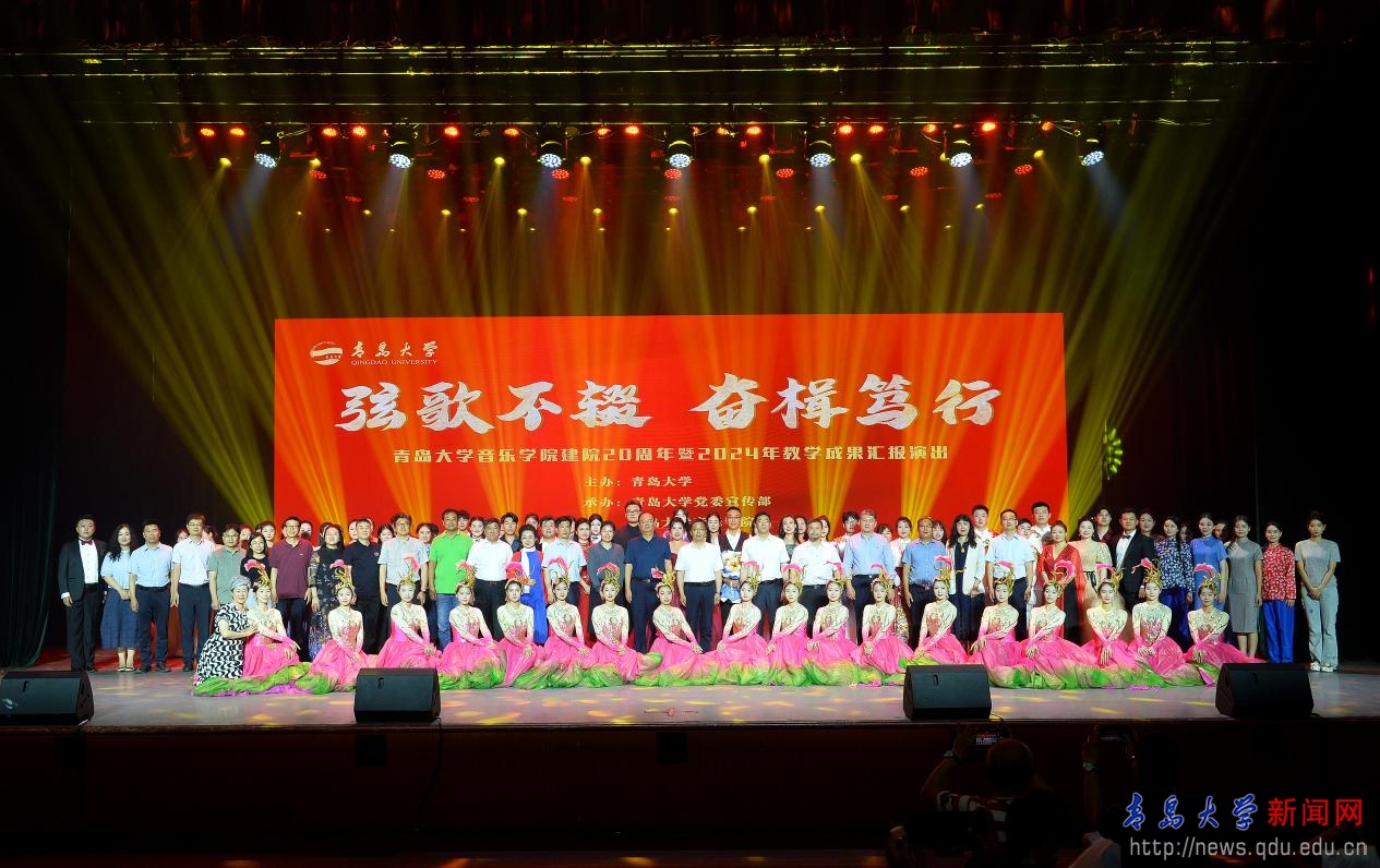 新聞網(wǎng)訊 6月19日晚,由青島大學(xué)主辦,黨委宣傳部、音樂(lè)學(xué)院承辦的音樂(lè)學(xué)院建院20周年暨2024年教學(xué)成果匯報(bào)演出在青大劇院圓滿舉行。校領(lǐng)導(dǎo)胡欽曉、李建波、吳世珍,青島市委宣傳部、市教育局、市文聯(lián)、市殘聯(lián)、青島廣播電視臺(tái)、青島演藝集團(tuán)、市南區(qū)委宣傳部、嶗山區(qū)文聯(lián)、青島音協(xié)、青島舞協(xié)等單位相關(guān)負(fù)責(zé)同志,學(xué)校相關(guān)職能部門(mén)、部分學(xué)院負(fù)責(zé)同志,曾經(jīng)在音樂(lè)學(xué)院工作過(guò)的教師,校友及共建單位代表等共700余人觀看演出。