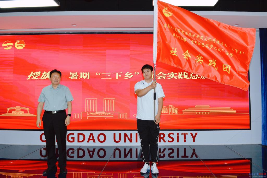 陳濤代表學校對參加此次暑期“三下鄉”社會實踐活動的師生表示熱烈祝賀,對我校共青團多年來實踐育人工作給予肯定,并對即將出征的青年朋友們提出三點希望:一是堅定理想信念,強化育人目標引領。要提高政治站位,聚焦“堅定理想信念”、“增強做中國人的志氣、骨氣、底氣”、服務“國之大者”的核心目標。今年是新中國成立75周年,是五四運動105周年,在牢牢把握“青春為中國式現代化挺膺擔當”總要求的同時,把握“此時、此地、此身”,以聰明才智貢獻國家,以開拓進取服務社會,實現從“我能從實踐中獲得什么”到“我能為人民群眾帶去什么”的思想升華,上好“行走的思政課”,強化育人目標引領。二是練就過硬本領,結合專業特色服務。要認真學習宣傳貫徹習近平總書記在山東考察時對山東工作提出的“走在前,挑大梁”重要指示要求,找準“小切口”展開“大縱深”,緊密結合自身學科專業,強化特色化的實踐服務,走向國家重點單位、新行業新企業;聚焦教育強國建設,鄉村支教、“愛心課堂”等帶動欠發達地區教育質量整體提升等;牢記“明德 博學 守正 出奇”校訓精神,在服務社會中促進專業所學,在發現和解決問題中培養綜合素質。三是精心組織謀劃,打造協同聯動格局。今年是我校開展“三下鄉”暑期社會實踐活動的第27個年頭,經過多年培育,學校社會實踐工作在實現內涵發展中取得卓越成績,多個項目團隊獲評全國優秀團隊、多個集體個人獲評全國優秀組織單位、優秀實踐個人等榮譽,項目成果轉化獲得“挑戰杯”“創青春”等全國大賽金獎。隨著新時代大眾文化素養和需求水平的提升,暑期社會實踐大課怎么上,怎么上好,也必須創新。要加強校內、校外交流融合,加強頂層設計和宏觀指導,將各類實踐平臺分類、重組、整合,實現資源共享和強強聯合,充分調動教學、科研、管理、服務等部門工作熱情,形成育人合力;要精心組織謀劃,加強安全保障和過程管理,確保安全有序。