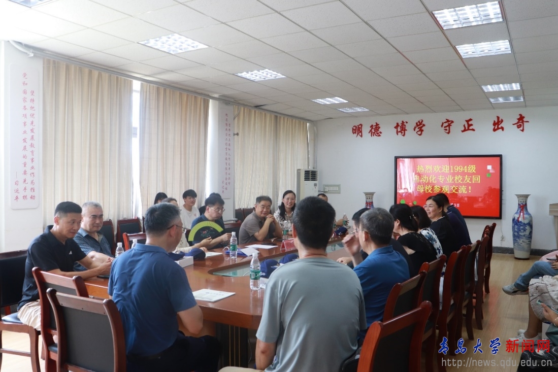新聞網訊 8月3日,自動化學院舉辦“緣起三十年,再聚仍青春”1994級校友返校座談會。青島大學原校長、1979級自動化專業校友夏東偉,師范學院黨委書記、1994級自動化專業輔導員劉清亮,自動化學院黨委副書記于宏和返校校友參加座談會。