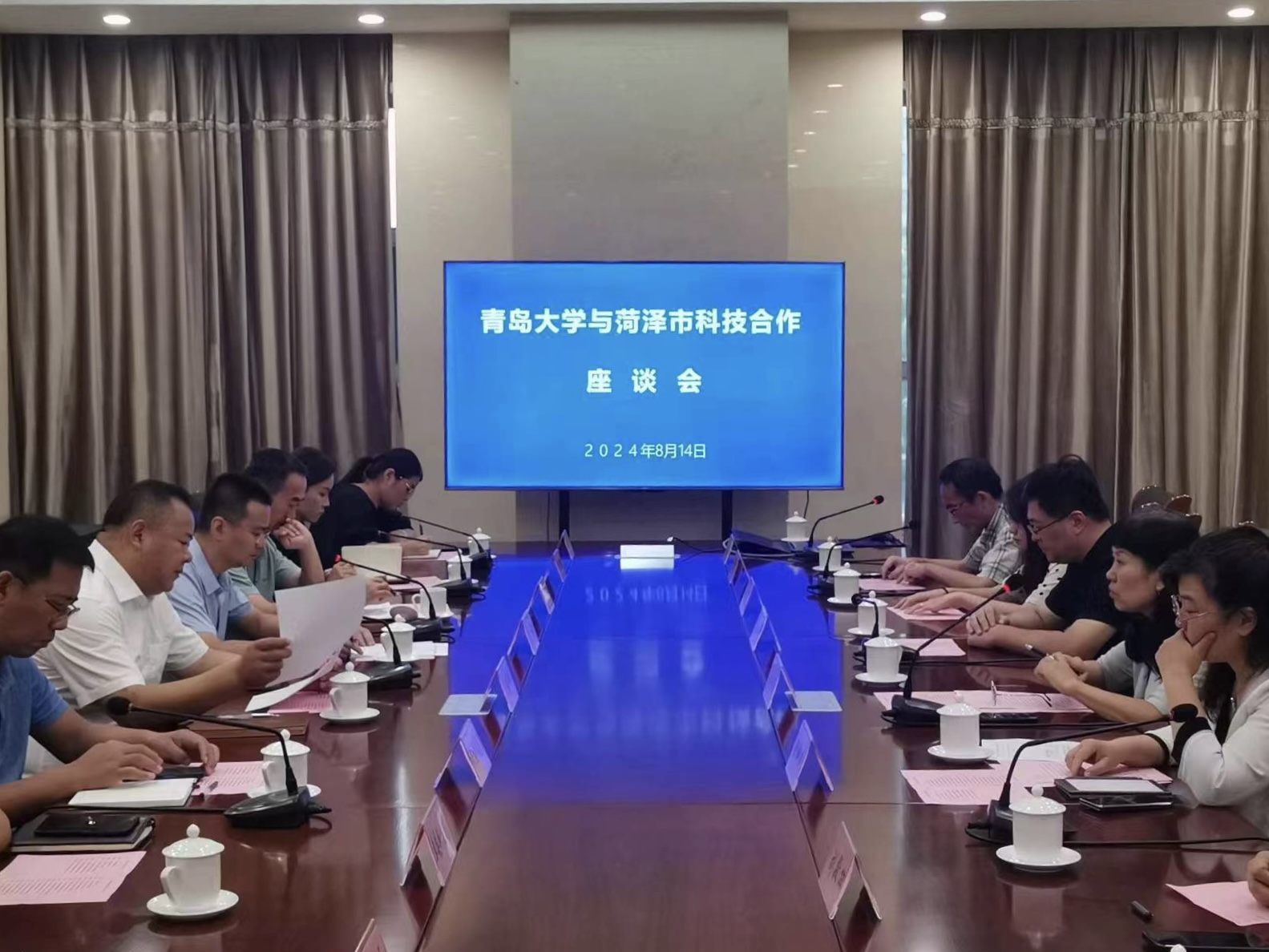 新聞網訊 8月14日,科技處同材料科學與工程學院、機電工程學院、公共衛生學院以及營養與健康研究院的專家教授共赴菏澤市科技局開展科技合作對接活動。山東省“四進”工作組菏澤總隊總隊長、青島大學副校級領導劉彩云,菏澤市科技局局長王冠坤,菏澤市科技局四級調研員周琨,菏澤市各區縣科技局領導以及菏澤市科技企業代表共同參加對接活動。