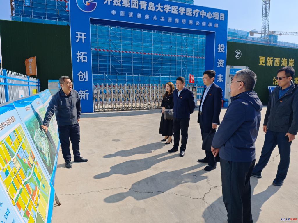 在實地調研中,雙方深入青島大學醫學醫療中心建設工地,對項目整體規劃、功能定位、施工情況、配套保障等事項進行了解。