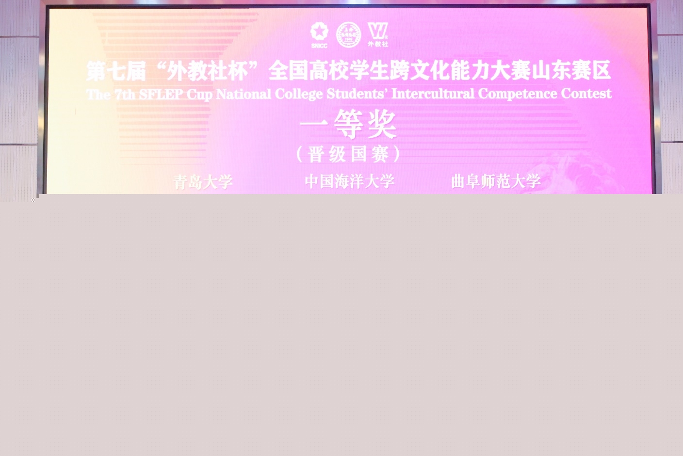 “外教社杯”全國高校學生跨文化能力大賽由中國教育國際交流協會指導,上海外國語大學主辦,上海外語教育出版社承辦,上海外國語大學跨文化研究中心提供學術支持。本次山東賽區的比賽由山東省本科教育通用外國語種類專業教學指導委員會、山東省本科教育大學外語教學指導委員會和上海外語教育出版社聯合主辦,青島大學承辦。省內院校積極參與,組織團隊認真備賽,通過校級初賽階段的層層選拔,共有56所高校推選的團隊參加山東賽區復賽。