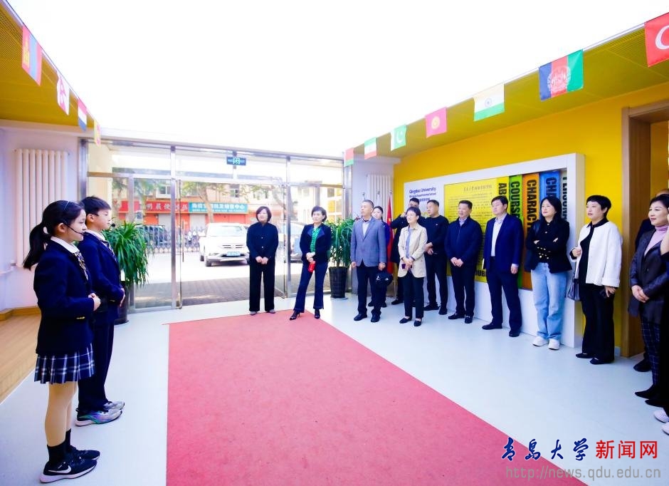 代表團首先到青島大學(xué)雙語實驗學(xué)校參觀交流,隨后到青島大學(xué)教育集團參觀座談,代表團參觀了教育集團文化墻,聽取了教育集團人工智能賦能中小學(xué)高質(zhì)量有特色發(fā)展情況和英語融合課程示范中心課程開展及創(chuàng)新情況的匯報。