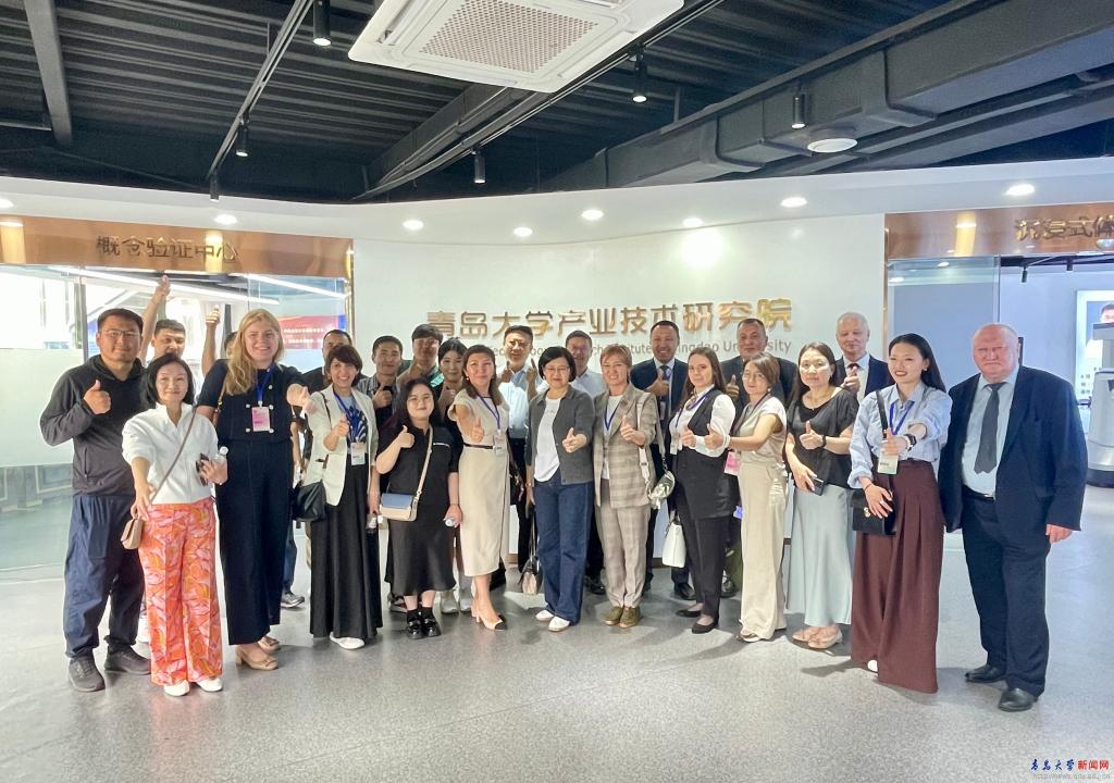 劉恩賢代表學校對上合組織國家代表團一行來校參觀考察表示熱烈歡迎。上合組織國家代表團一行走進產業技術研究院,“邊看邊聊、邊聽邊問”,詳細了解了我校成果轉化應用及產業化等情況。代表團表示,通過本次參觀考察,對我校有了更為深入的了解,希望以本次考察為契機,進一步推動上合組織國家高校院所與青島大學在聯合研發、人才培養等領域的常態化合作。