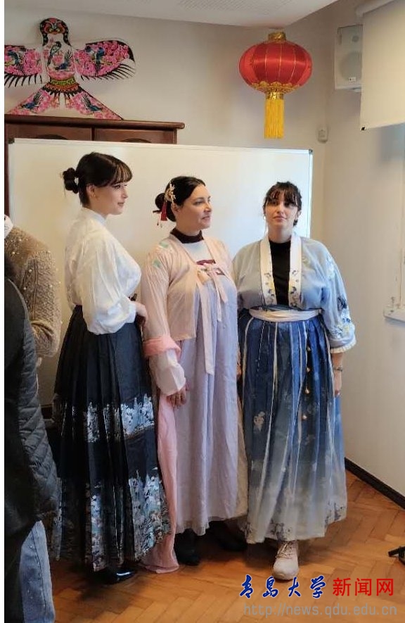 漢服,作為中國傳統文化的重要組成部分,承載了中華民族幾千年的歷史與審美。孔子學院為參與者們精心準備了各種款式的漢服,有飄逸的襦裙、莊重的深衣、華麗的大袖衫、馬面裙等。老師們熱情地幫助大家穿上漢服,挑選發簪,整理好裙擺和衣帶。當大家穿上漢服的那一刻,仿佛穿越時空,回到了古代。這一刻,他們不僅感受到了漢服之美,更體會到了中國傳統文化的獨特魅力。
