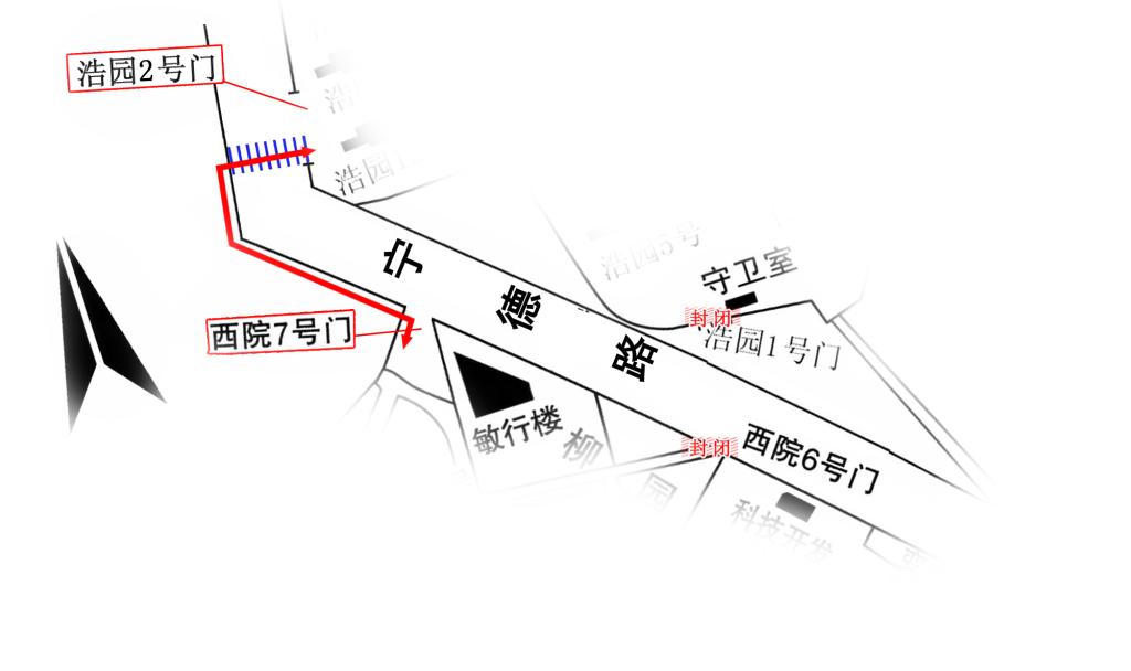 為保障我校師生出行安全,2 0 1 4年6月7日起市人防辦將在寧德路中段開工建設地下人防通道。因施工需要,我校將于6月23日(周一)起封閉中心校區西院6號門和浩園1號門,同時啟用浩園2號門和西院7號門。